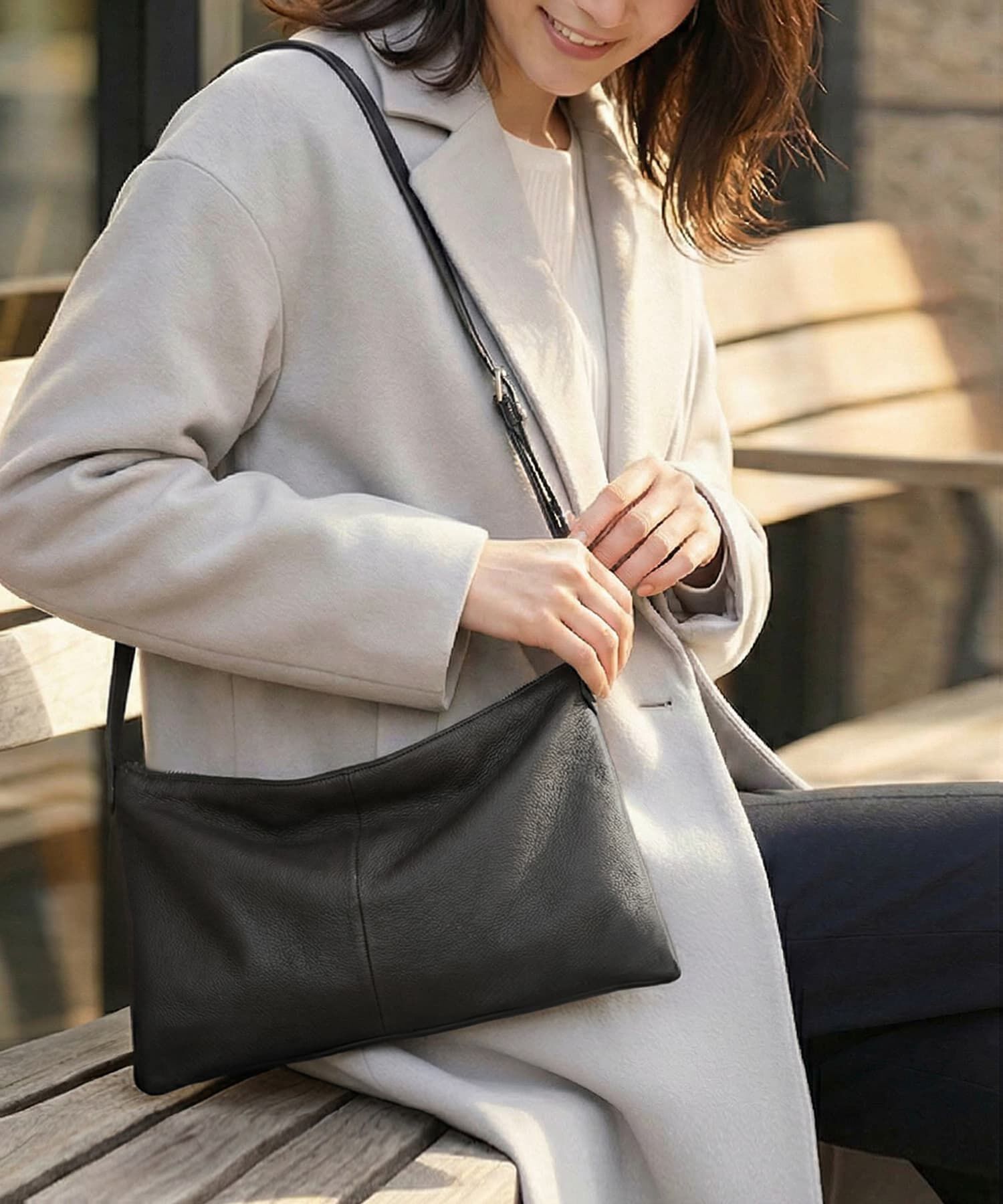 【スタイルデリ/STYLE DELI】 【DELI by】ソフトドレープ・リアルレザースリムショルダーバッグ