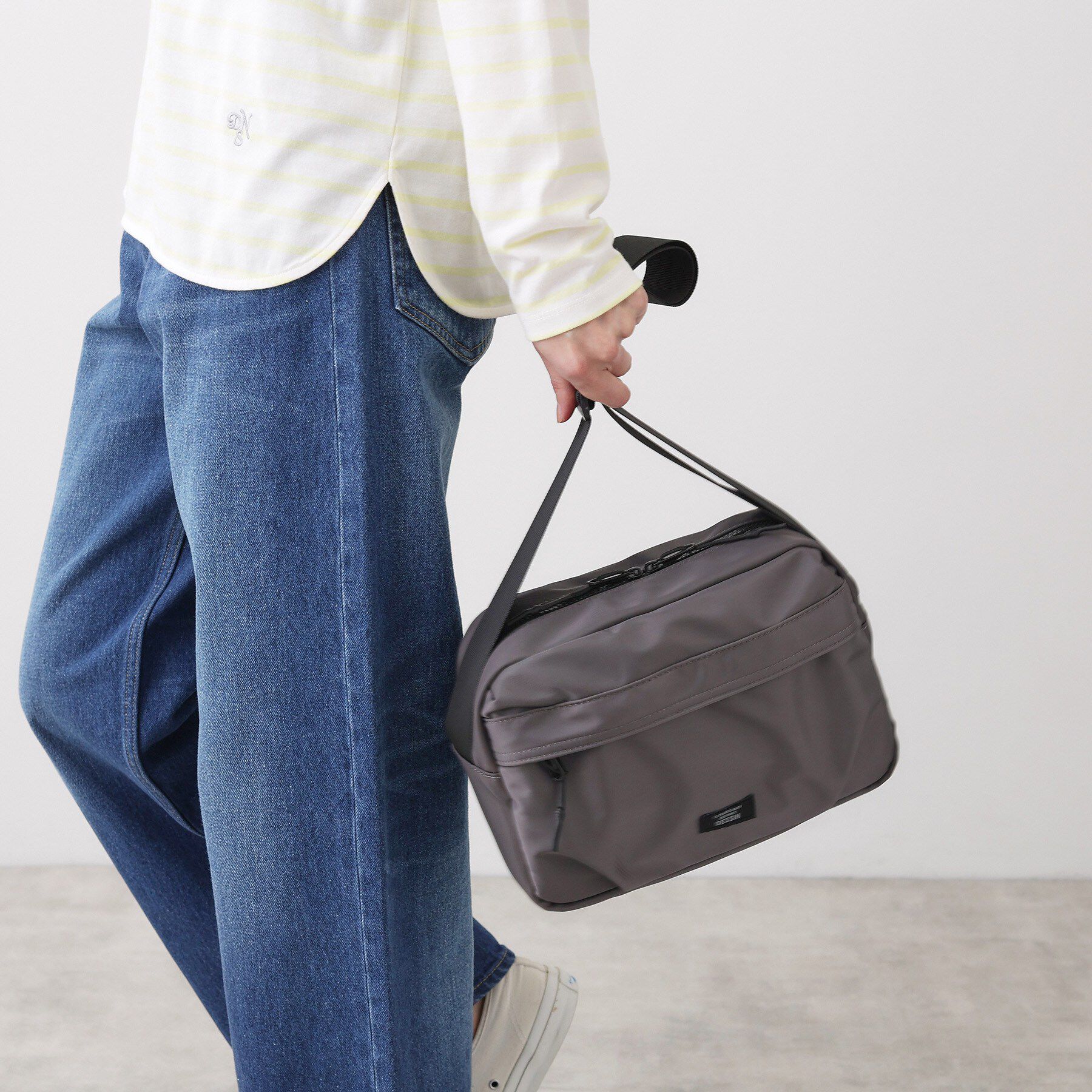 【デザインポイント】軽量で耐久性のあるポリエステル素材を使用したショルダーバッグ。シンプルなデザインに、太めのショルダーストラップが程よいカジュアル.. |