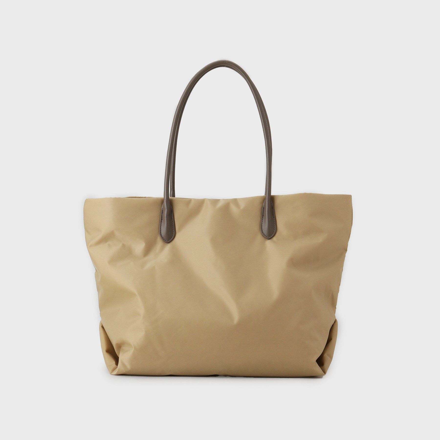 【デザイン】書類やパソコンが入れられるサイズのシンプルなトートバッグ。上品さのある程よいシボとツヤのある素材は、軽くソフトで、持った時に体に優しく馴.. |