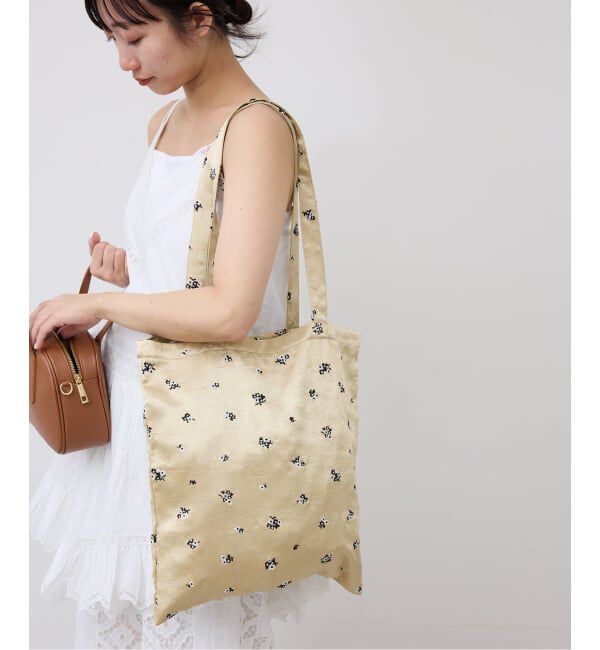 シリーズあり/花柄/サテン【2026SS】SLOBE IENAPOINTオリジナルの花柄を刺繍したサテントートBAG。裏地付、内ポケット付きで機能性も◎【素材の特徴】光沢のあ.. |