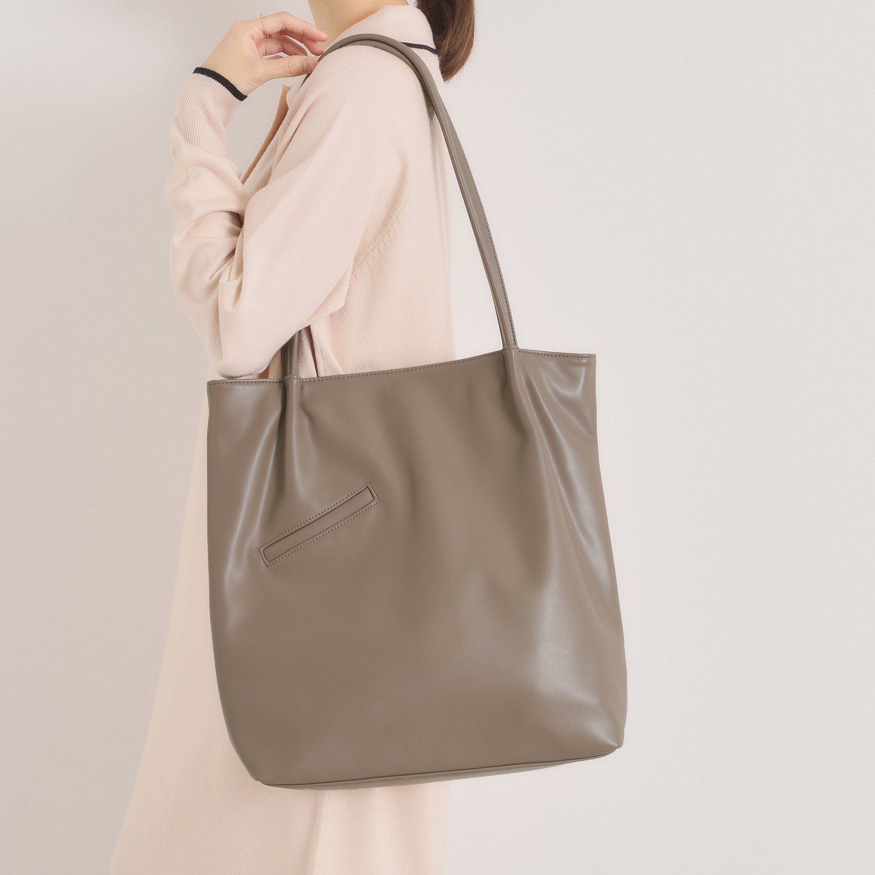 【デザイン】トートバッグ・ショルダーバッグと2wayで使えるカジュアルトートが登場。艶のあるくったりと柔らかい合皮を使用し、トレンドのワンハンドルでこな.. |