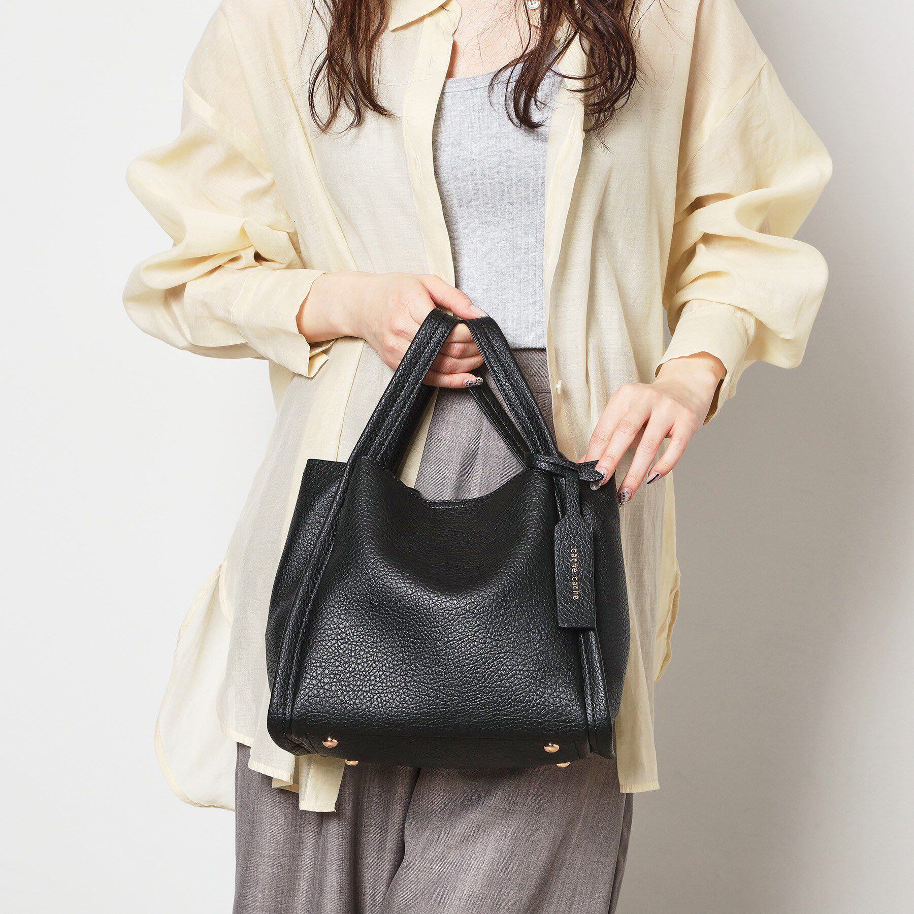型崩れしにくいしっかりとしたレザー調素材に、太めのキャンパス地の持ち手を合わせることで、大人カジュアルなミニトートバッグに仕上げました。小さすぎない.. |
