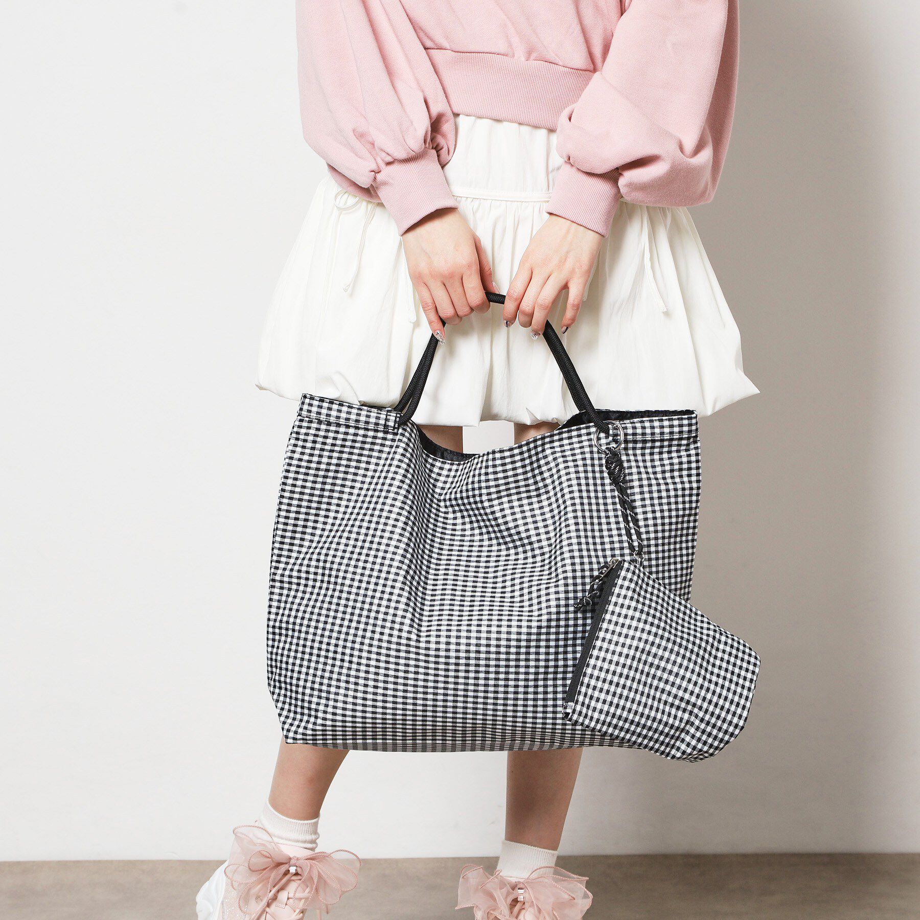・ギンガムチェックのチュールが可愛いトートバッグ。・大きめサイズなので、コーディネートの主役としても◎・パッと華やかにしてくれるアイテムです。・内側.. |