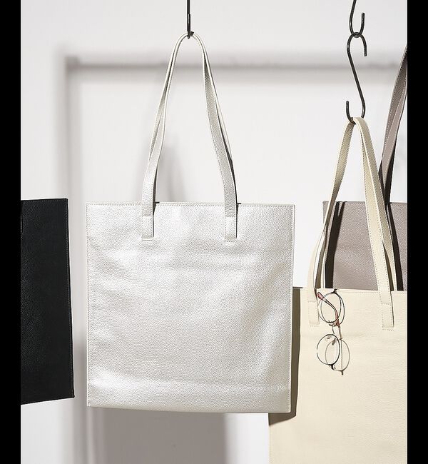 シンプルでベーシックなデザインの縦型トートバッグ。1枚で使えるスプリットレザーを使用しており、裏地がないため軽量で荷物の多い日にも便利なサイズ感。開.. |