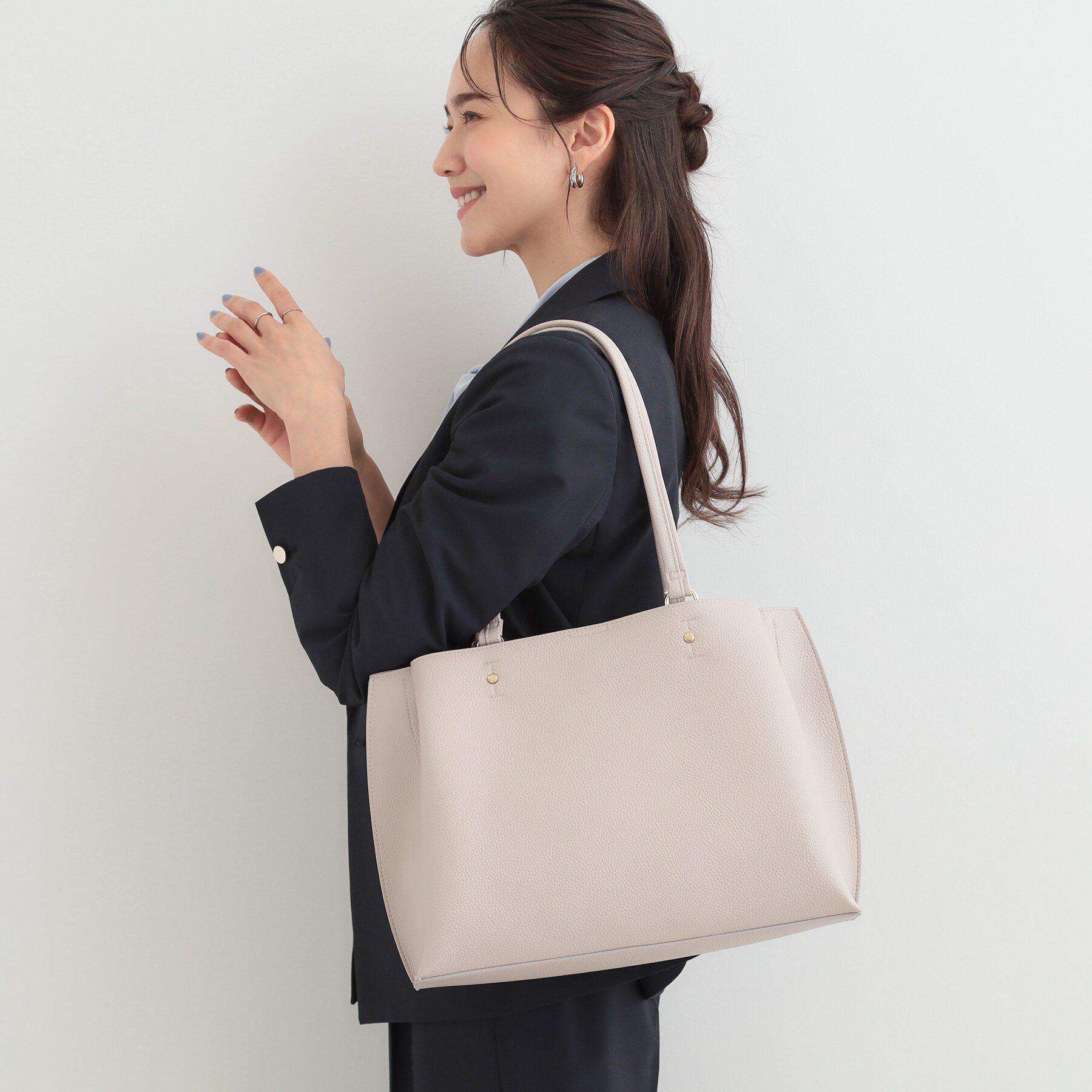 【デザイン】本体に軽量素材を使用したトートバッグです。程よいシボ感のある素材を使用しキレイめに仕上げました。A4サイズのファイルが入りますので、通勤や.. |