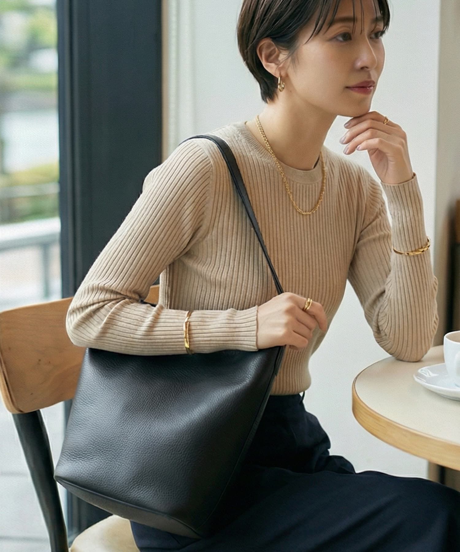 無駄を削ぎ落としたフォルムと、軽やかに持てるサイズ感が魅力のバケット型レザーバッグ。必要なものだけを美しく持ち歩きたい、大人の日常に寄り添う一品です.. |