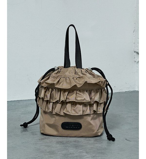 ふんわり可愛い3段フリルが目を引く、巾着タイプの2WAYバッグ。ギャザーたっぷりのナイロン生地が軽やかで、休日の大人カジュアルにぴったりのデザイン。ドロ.. |