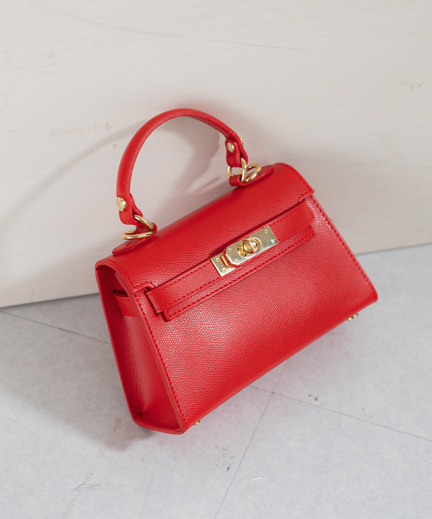 コーディネートのワンポイントに最適なミニボストンバッグ。艶感のあるフェイクレザーにゴールド金具をデザインした上品な印象のひと品です。財布やコスメなど.. |