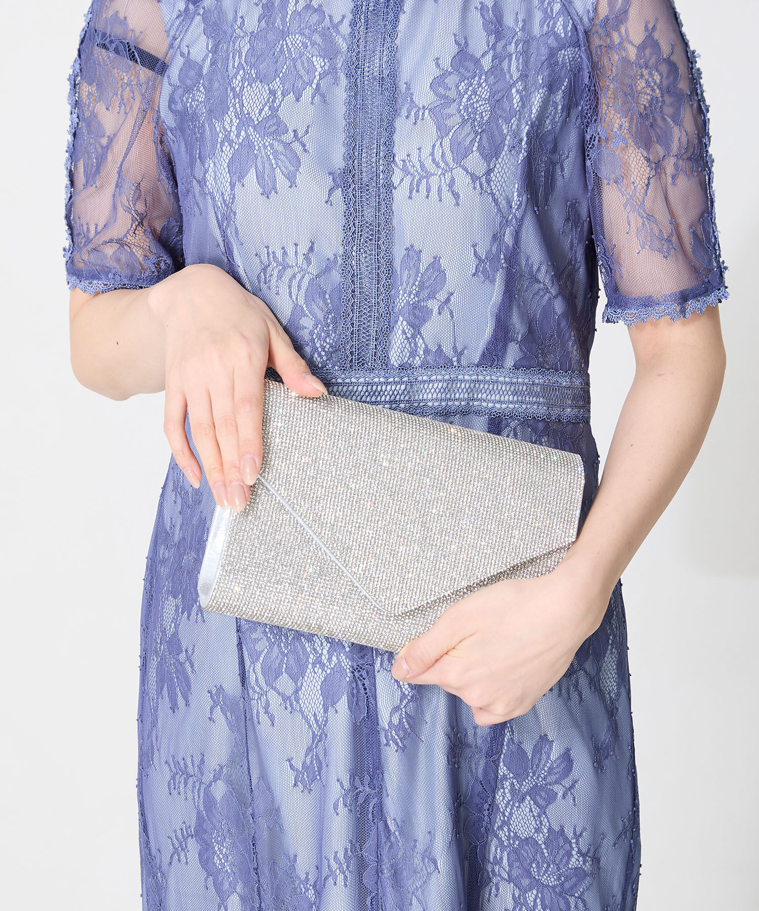 繊細なラインストーンが上品なパーティーバッグ。袱紗が入る大きさでパーティーシーンに必須なメイク道具、スマートフォン、ハンカチなどがすべて収納出来る◎.. |