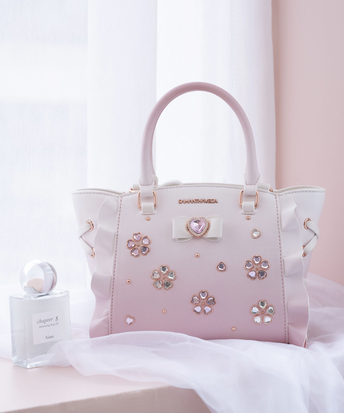 ◇SAMANTHAVEGA(サマンサベガ)のジュエルリボンハンドバッグ1つで主役級!オリジナルビジューが高級感溢れる大人かわいいシリーズ。▽デザイン・ジュエリーのよ.. |