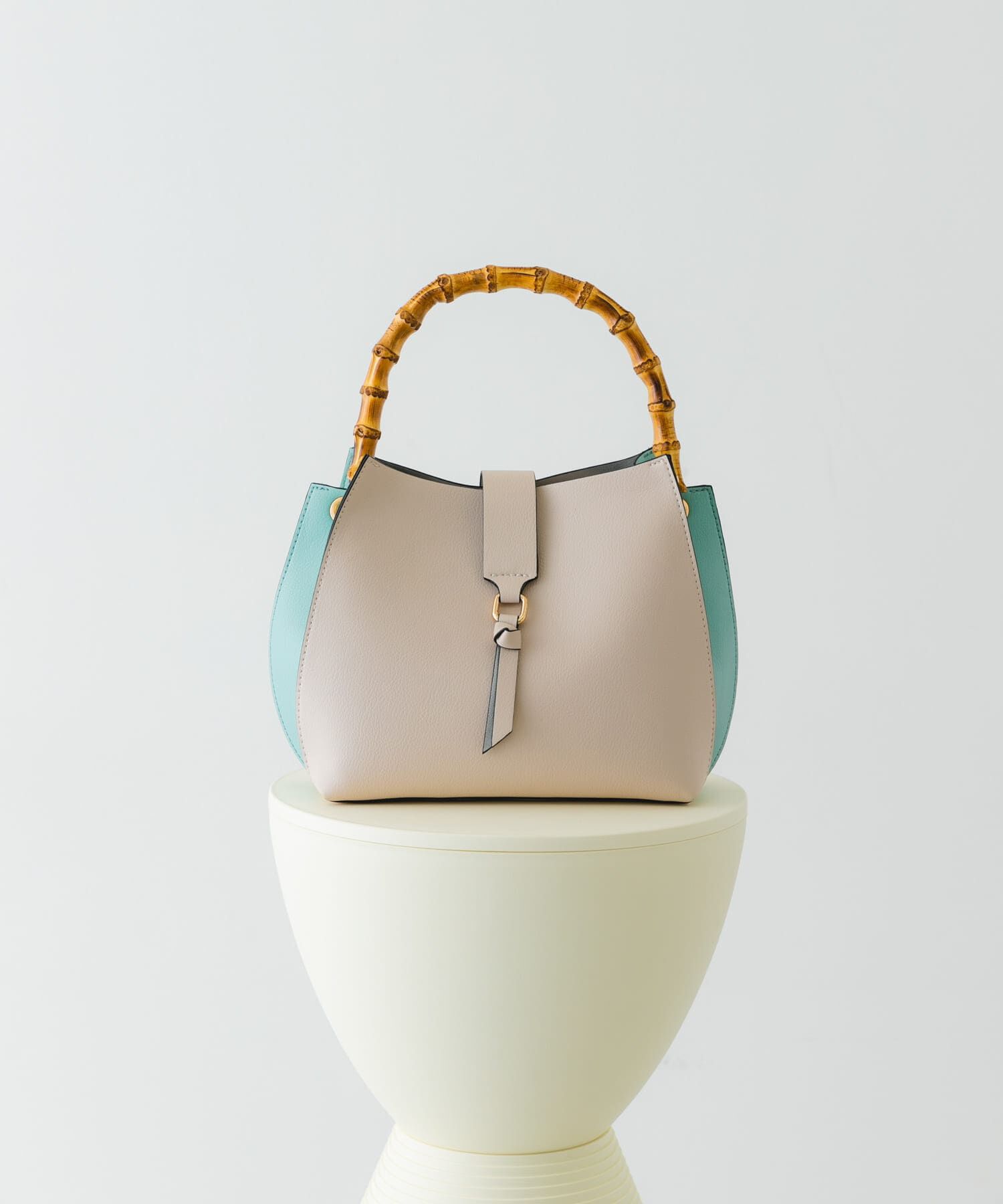 バンブーハンドルがアクセントになるハンドバッグ【Material】本体 : 合成皮革持ち手部分 : 天然草木(竹)【Design】ナチュラルなバンブーの持ち手が高級感をプ.. |