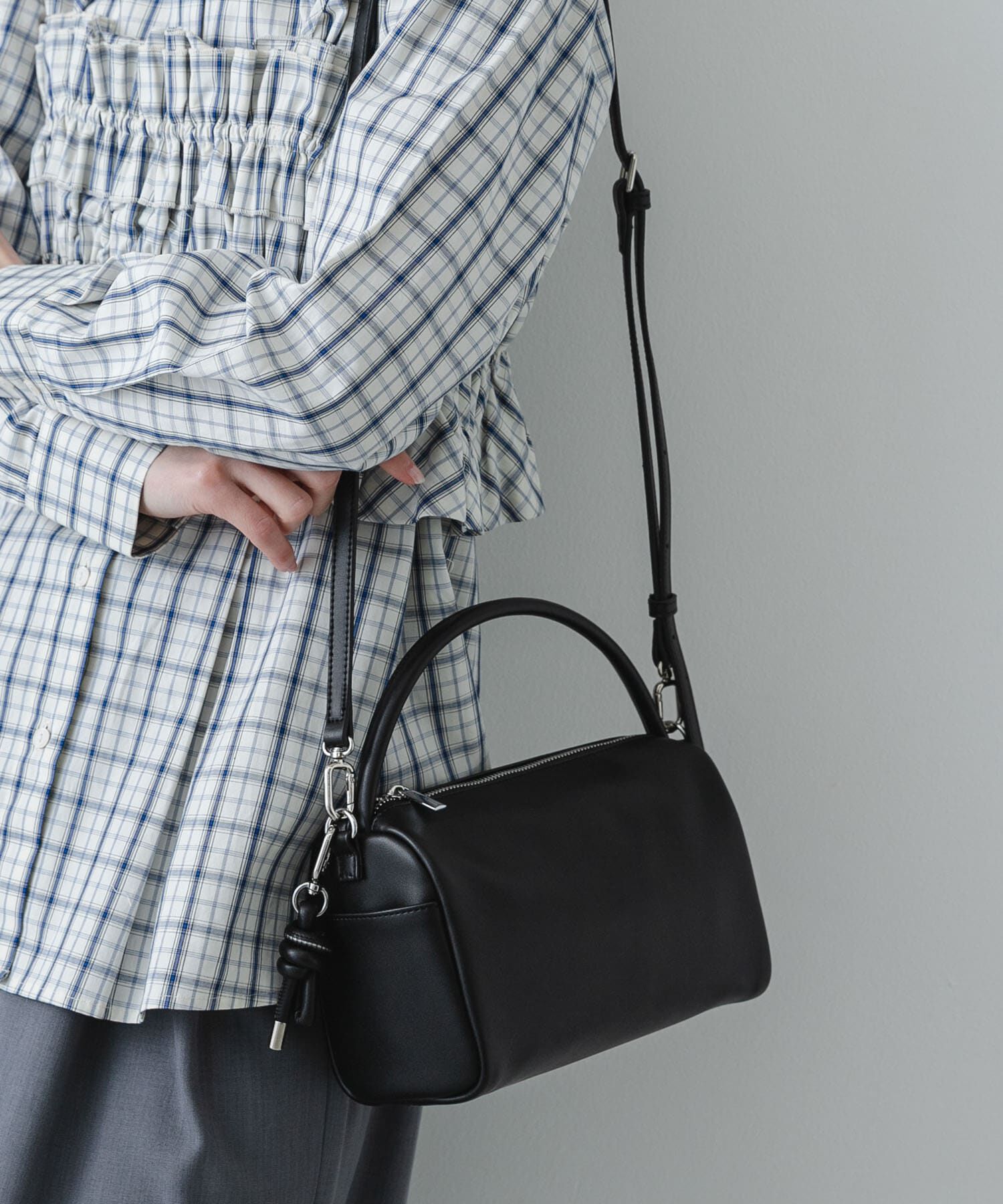 【チャームがアクセント。ころんフォルムバッグ】・なめらかなフェイクレザーと、温かみのあるスウェードライク素材の質感を楽しむアソート展開・身体に優しく.. |