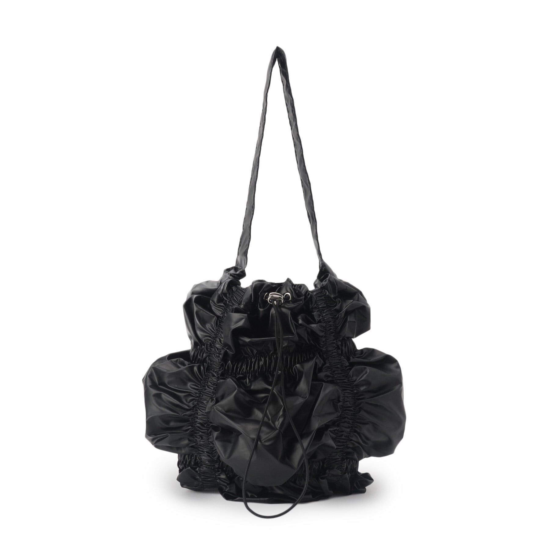 くしゅくしゅのシャーリングデザインが印象的なバッグです。トレンドの光沢感のある素材は軽量なのが嬉しいポイント。持っているだけでこなれ感の出るバッグで.. |