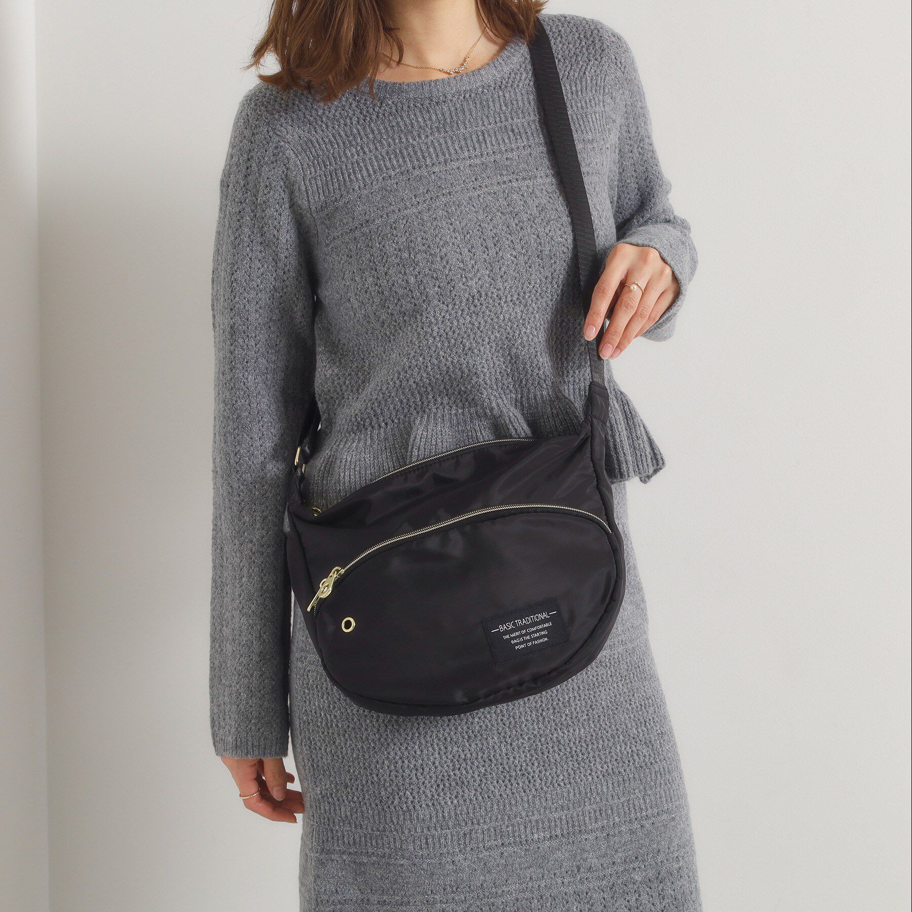 【デザイン】小さく見えて大容量!半月フォルムがかわいいプチプラのミニショルダー。小振りながらも程よくマチ幅があり、ポケットも充実で普段使いにオススメ.. |