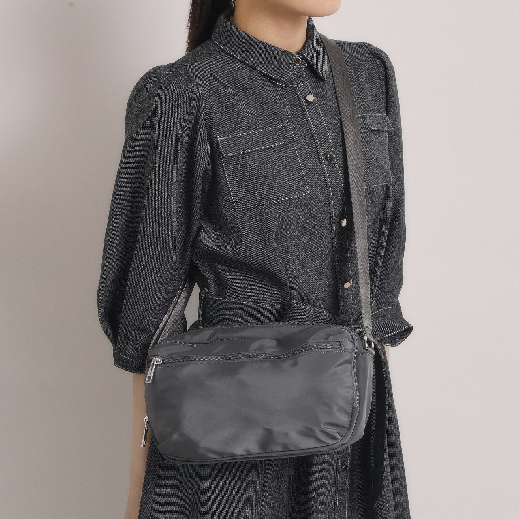 【デザイン】デザインキルトが特徴のショルダーバッグ。微光沢のあるポリエステルを使用しているので、カジュアルになりすぎずきれいめコーデにも合わせやすい.. |
