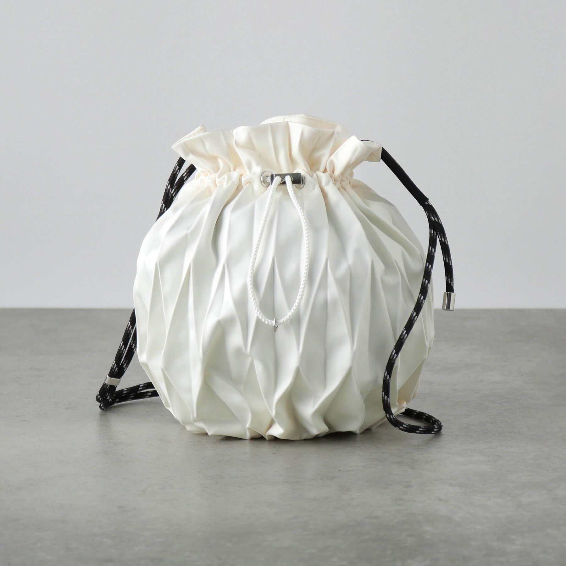 Kinchack(キンチャック)日本古来の袋物である巾着袋を再構築したプリーツバッグ「Kinchack」黄金比の考えを元に独自の比率で編み出した図形や折り紙から型紙.. |