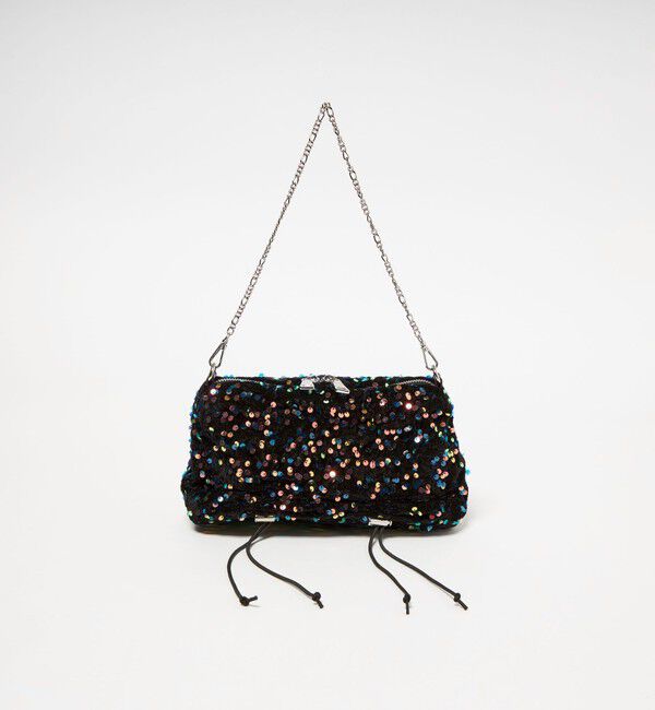 ボールチェーンが光る、ショルダーバッグ■デザイン目をひく大きめのメタリックボールビーズがチェーン状のチャームとしてあしらわれたバッグ。トレンド感あふ.. |