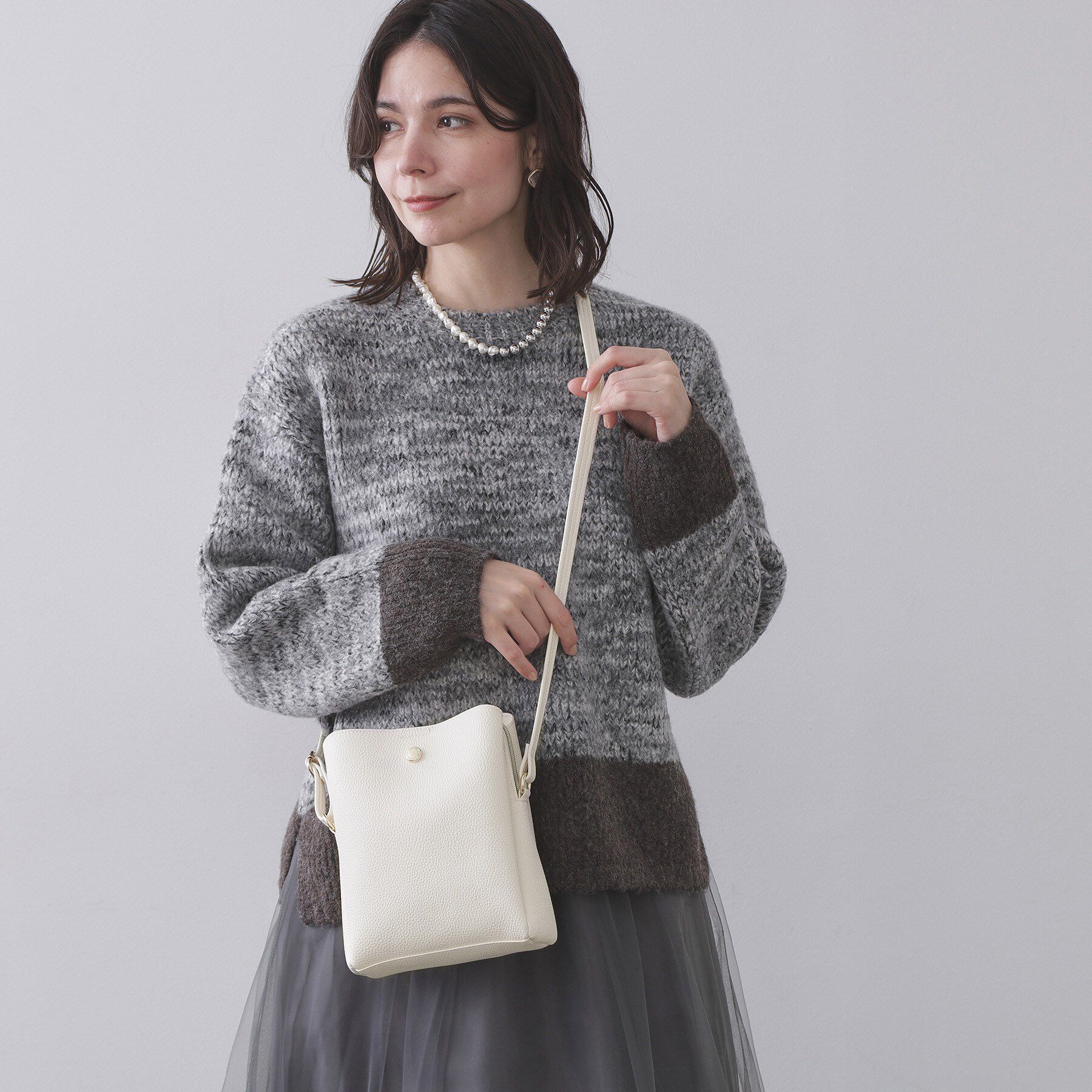 三層仕様が嬉しい!見た目以上に収納力があるスタイリングに合わせやすいシンプルミニショルダーバッグ・軽量のシュリンク合皮素材を使用・表面に凹凸感のある.. |