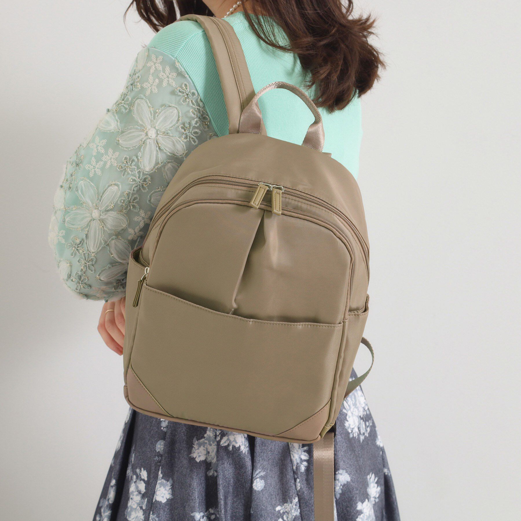 【デザイン】撥水加工を施した生地を使用した軽量A4リュック。やや光沢のある高密度ナイロンでキレイめコーデにもカジュアルコーデにも合わせやすいデイリーデ.. |
