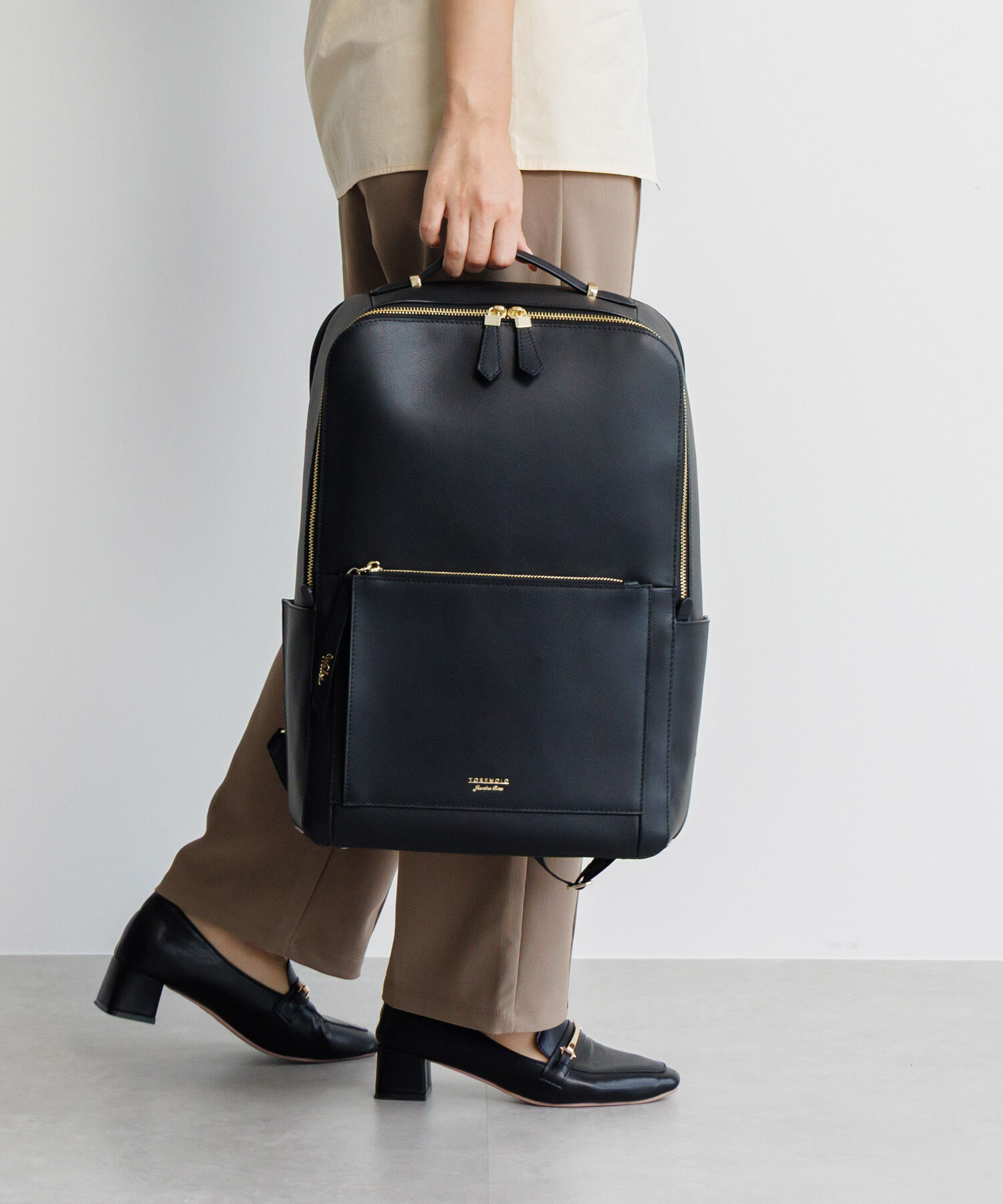 【デザイン】仕事もお出かけもスマートに。収納上手な14ポケットリュック。落ち着いた光沢感で大人っぽく仕上げたデザインで、オンオフ問わず持てるシンプルな.. |