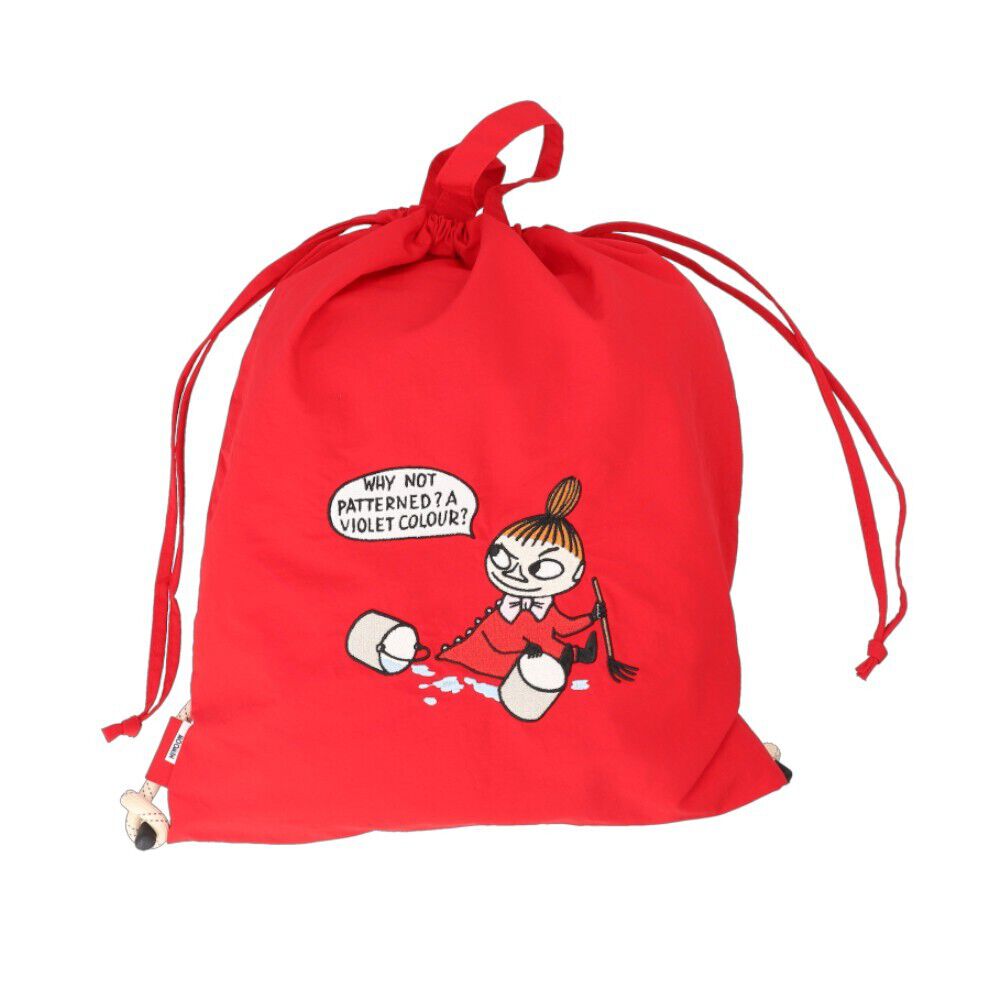 【商品説明】【ムーミンたちのキュートな刺繍♪】フロントに大きく刺繍されたムーミンの仲間たちがかわいい「MOOMIN エンブロイナップサック」【荷物の出し入れ.. |
