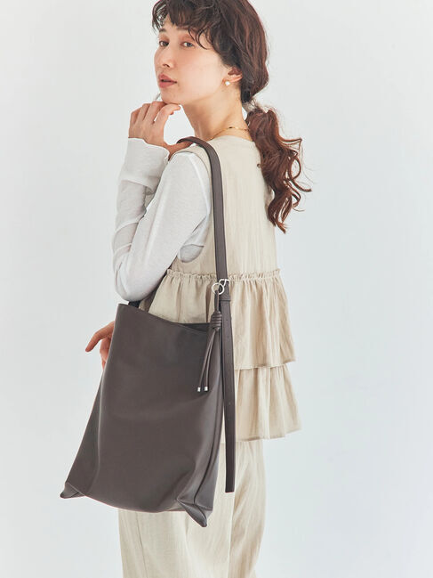 持ちやすいワンハンドルのデザインがトレンドライクな印象を与えるショルダーバッグ。シボ感のあるフェイクレザーを使用し、上品な風合いに仕上げました。中身.. |
