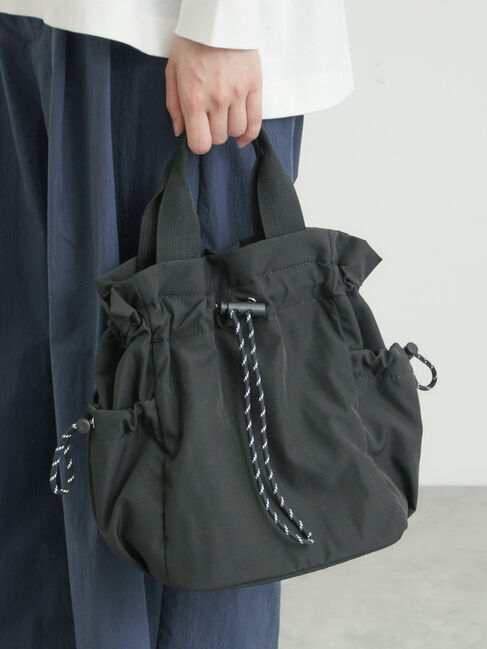 軽やかなナイロン素材を使用したシャーリングバッグ。程よい光沢感があり、デイリーからお出かけまで幅広く活躍します。広めの開口部で荷物が出し入れしやすく.. |