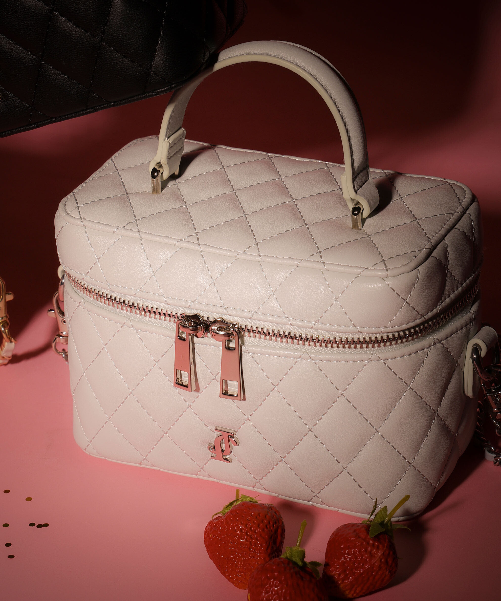 「コーディネートを選ばない、品の良いキルティングバッグ」微光沢のやわらかなフェイクレザーを使い、ぷっくりとしたキルティングのかわいさとスクエアフォル.. |