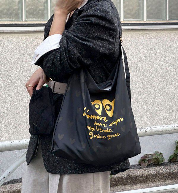 NOLLEY’S【grace grace/グラスグラス】◆Point・grace grace大人気のサブバッグに新柄が登場!・全体に小ぶりなハートが配置され、中央のゴールドプリントがポ.. |