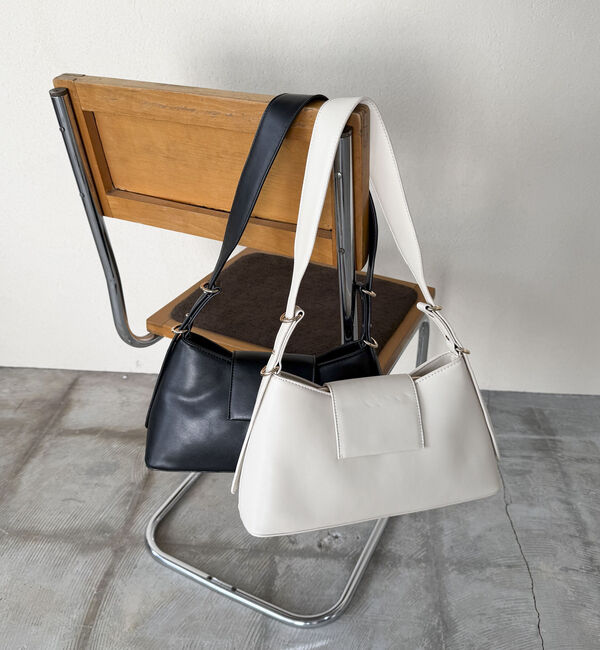 コンパクトに見えて収納力のあるショルダーバッグ・大きめなフラップがポイントできちんと見えするショルダーバッグ・持ち手は3段階で長さを調整できます・マ.. |