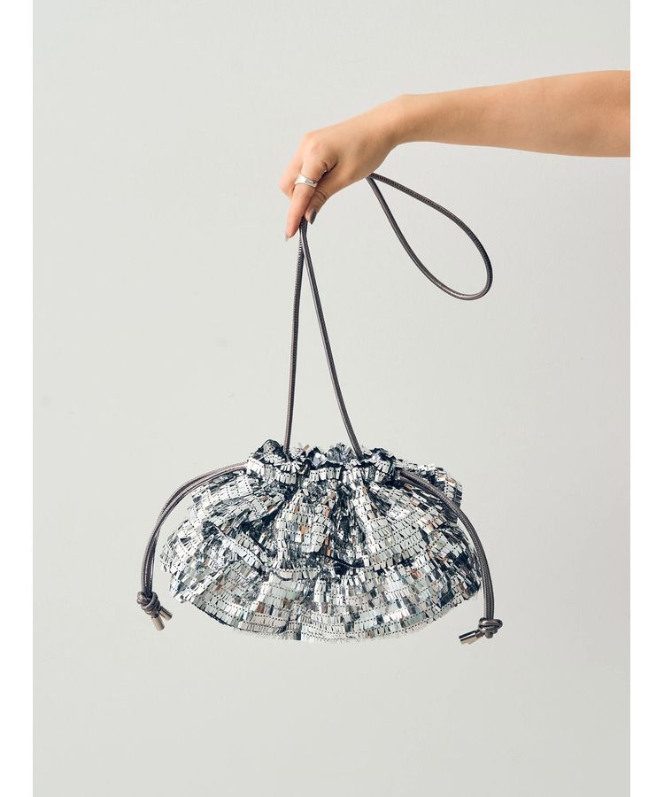 キラキラと輝くスパンコールが目を惹くバッグ。二重のフレアシルエットで仕上げた横長の巾着フォルムが魅力的なひと品です。しっかりとしたマチで見た目以上の.. |