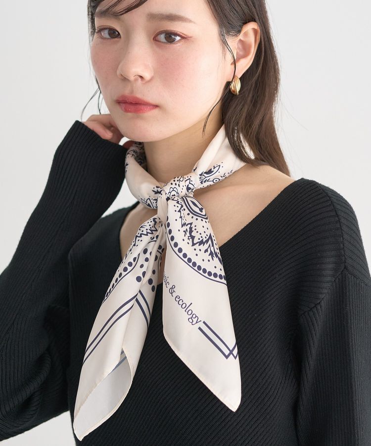 【アースミュージックアンドエコロジー/earth music&ecology】 ボタニカル柄スカーフ(70×70)