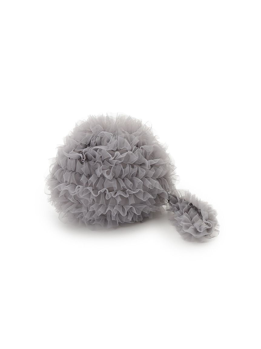 【ボリュームフリルが華やかなハンドル付きポーチ】【Design/Styling】まるでふわふわの小動物のような可愛らしさ。チュールのフリルをたっぷりとあしらった、.. |