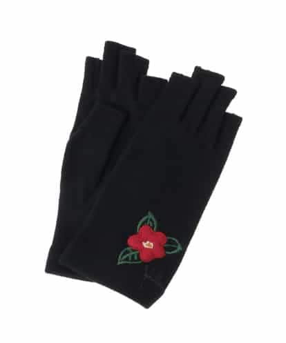 Sybilla(シビラ) 【日本製】フラワー刺繍ウールグローブ ブラック/黒 フリーサイズ