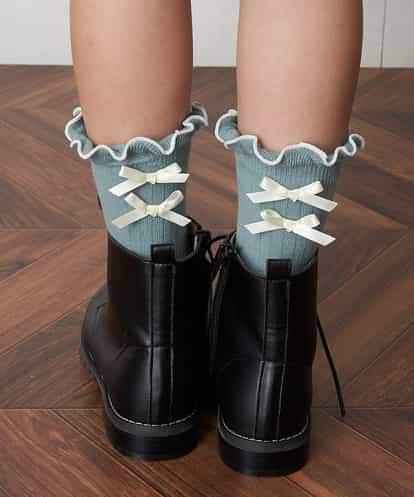 a.v.v(アー・ヴェ・ヴェ) [KIDS]バックリボンソックス ライトグリーン/緑 17