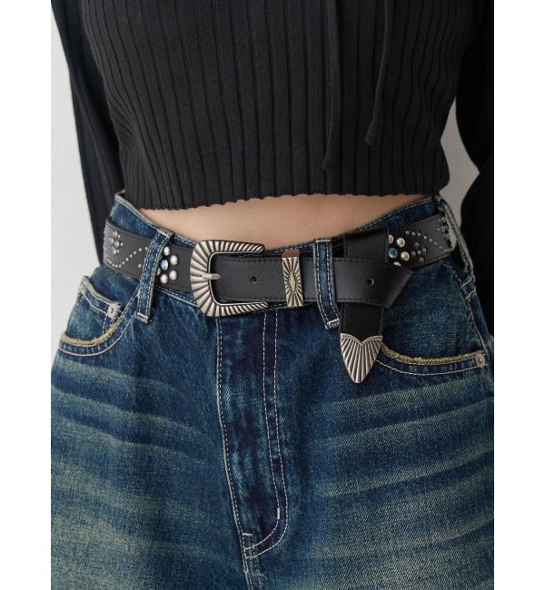 EVRIS(エヴリス)定番で人気のバックルベルトのアップデートデザイン。フェイクレザー部分にオリジナルのスタッズ模様をあしらった今期のコンセプトBOHOに合う.. |