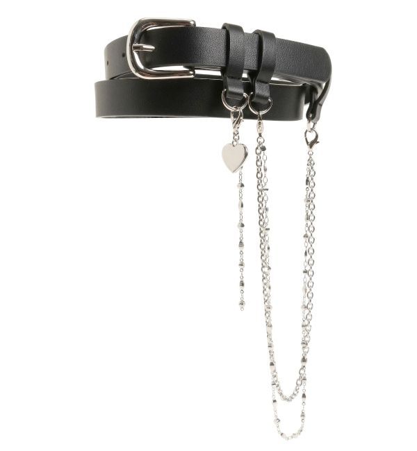 ベルトにハートプレートとチェーンを付けた今季らしいデザインベルト■デザインコーデの主役になるアイテム。ボトムに合わせてベルトループに通して着用するの.. |