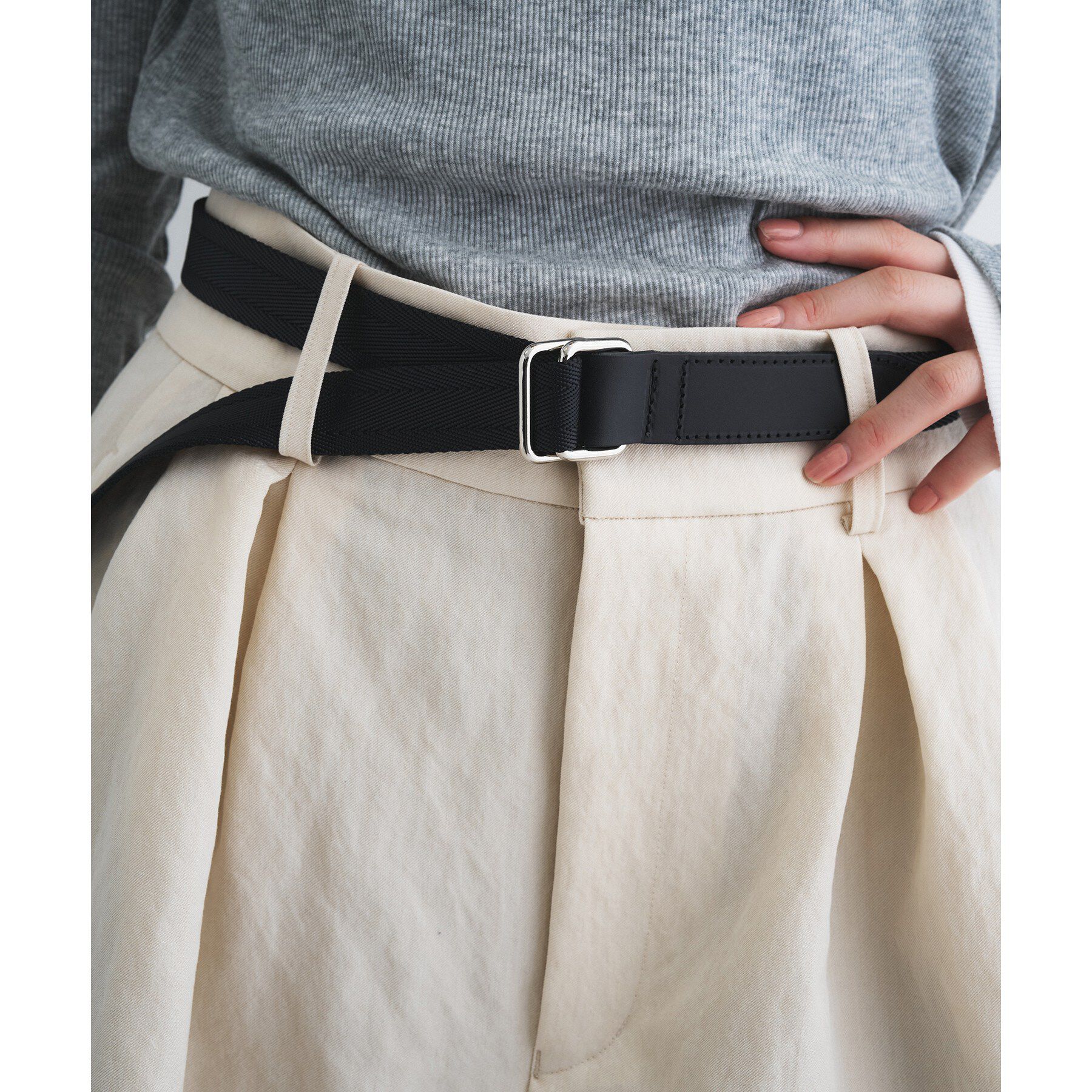 Le minorコレクション初のベルトラインが登場。ユニセックスでの使用も可能です。ナイロンとレザーのコンビネーションベルト。ベルト穴を設けていないため、ど.. |
