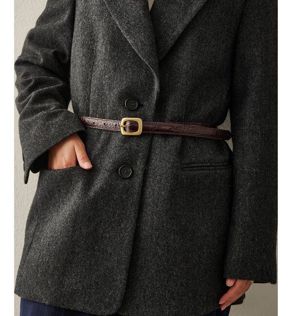【2025AW】 素材使いにこだわりが光る、型押しパイソン細ベルト ■丸みのあるスクエアバックル使いがポイントのナローベルト。 ■イタリア製のやぎ革に3次加.. |