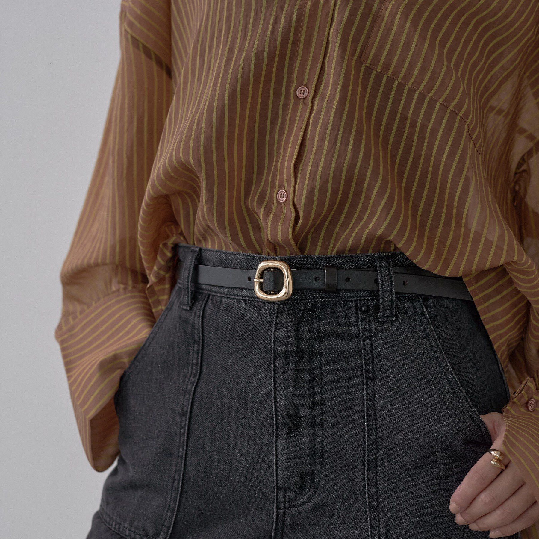 Design Point細身のレザーで仕上げられたベルトは、その洗練されたシルエットが魅力。シンプルながらも存在感があり、あらゆるコーディネートにマッチします。.. |