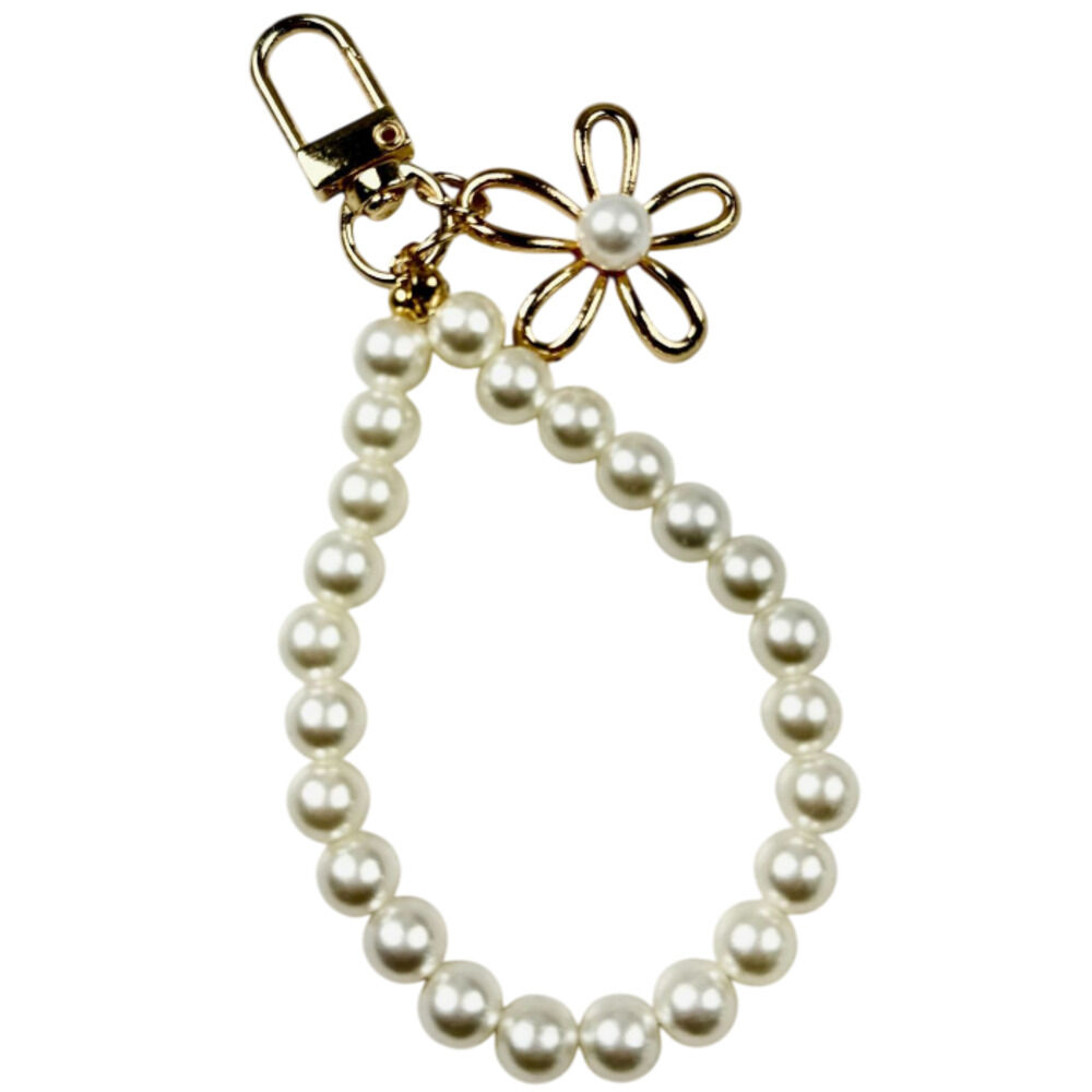 【商品説明】上品なホワイトパールに、華やかなゴールドフラワーモチーフを合わせたキーチャーム。清楚でエレガントな雰囲気を演出し、バッグや鍵に華やかさを.. |