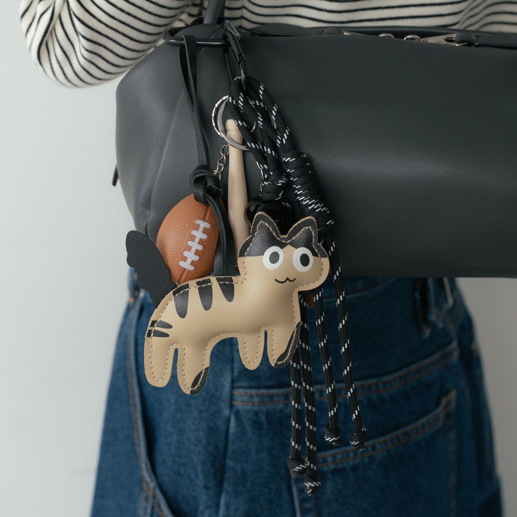 Design Point可愛らしい猫とラグビーボールのチャームが特徴的。遊び心満載なデザインは、バッグやポーチに付けるだけで個性を引き立てます。猫の表情が愛くる.. |