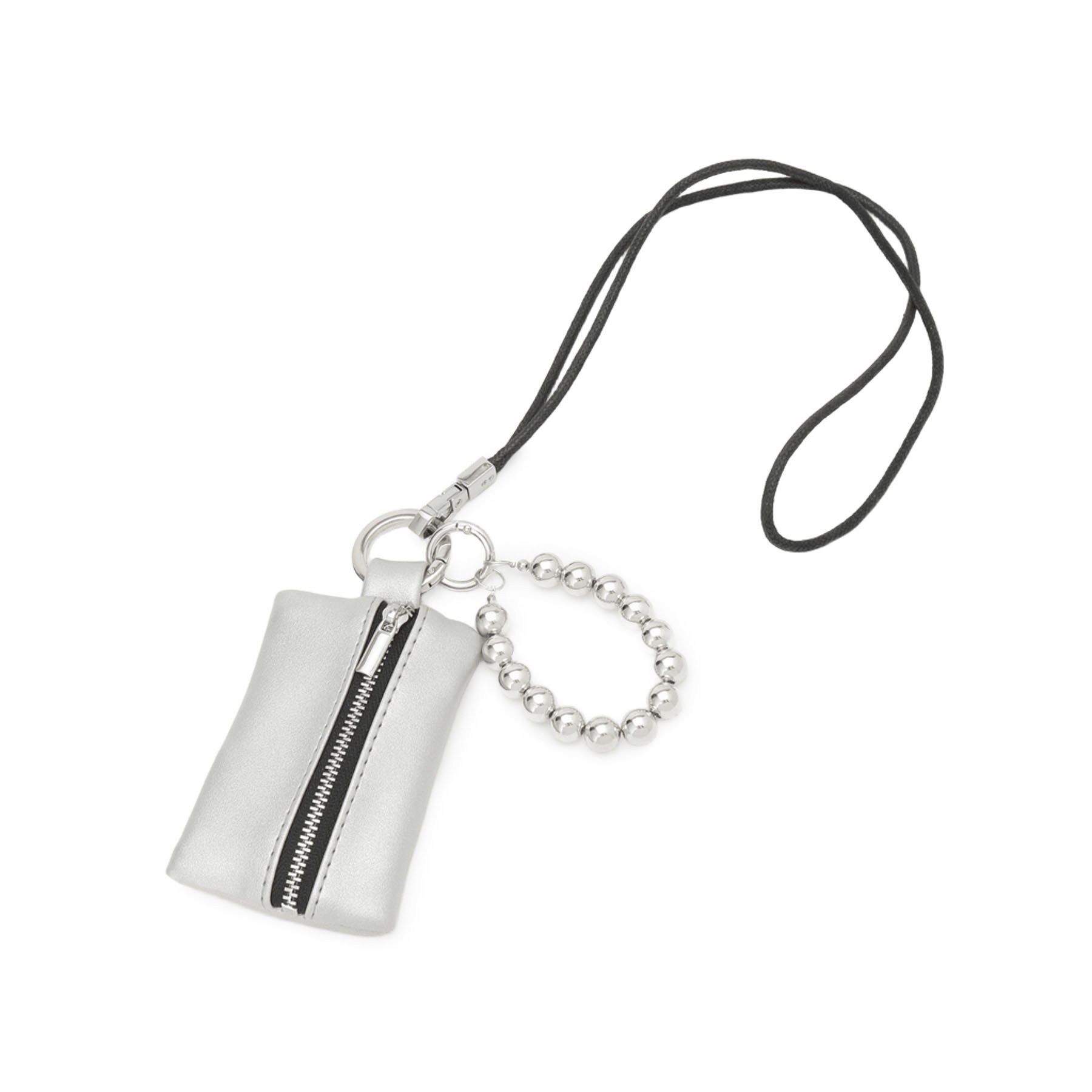 小さなジップポーチにメタリックハンドストラップがセットになったチャーム。ストラップは首掛けや手首掛けにも対応する実用的な仕様です。ミニポーチはカギや.. |