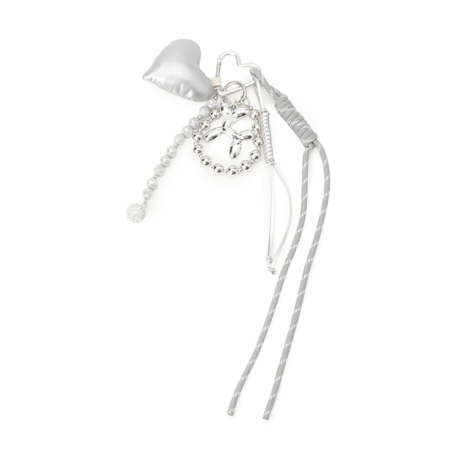キーリング付きのマルチチャームです。光沢のあるパフハートにビーズやパヴェボールを組み合わせ、ロープコードやメタルチューブのタッセルで動きを出したリッ.. |
