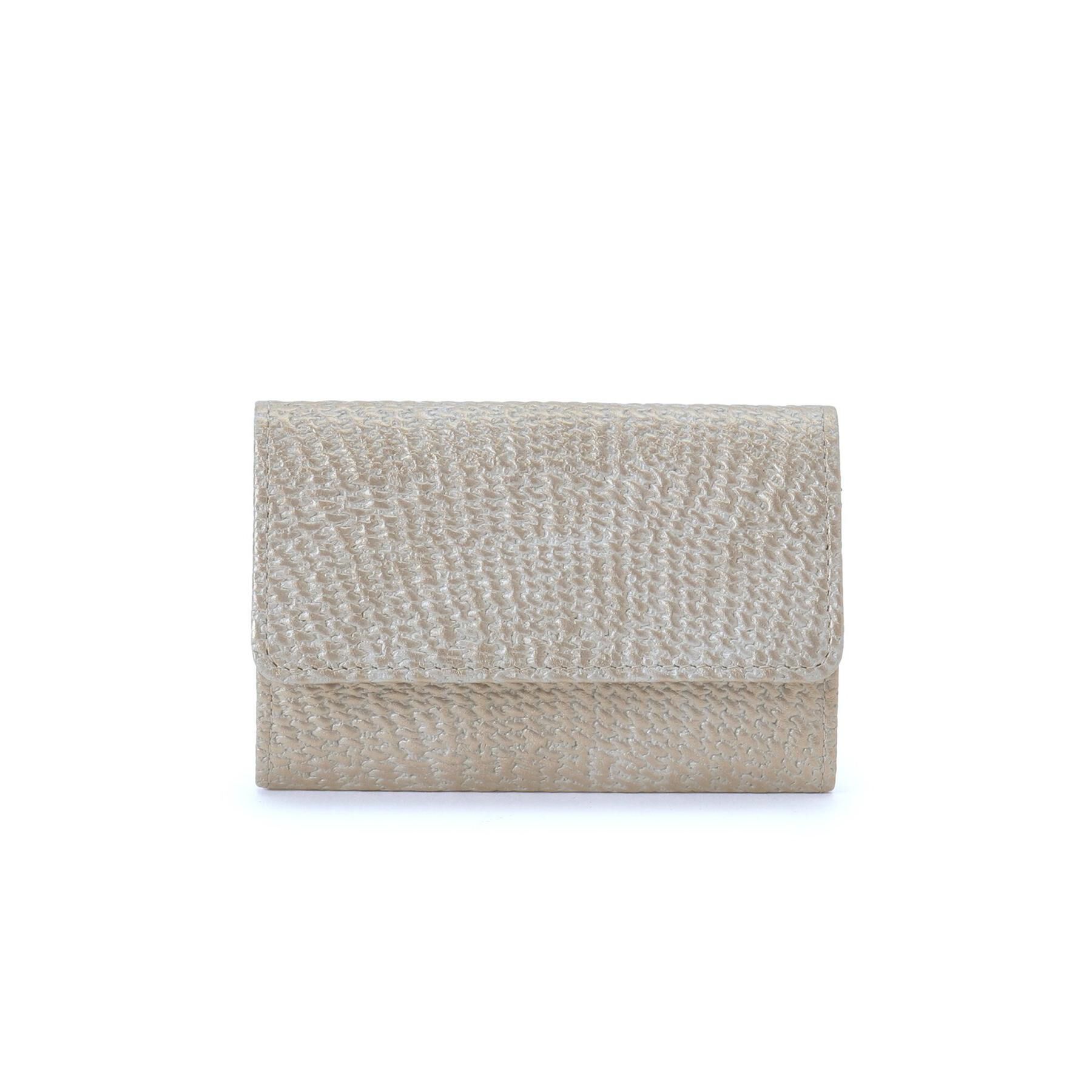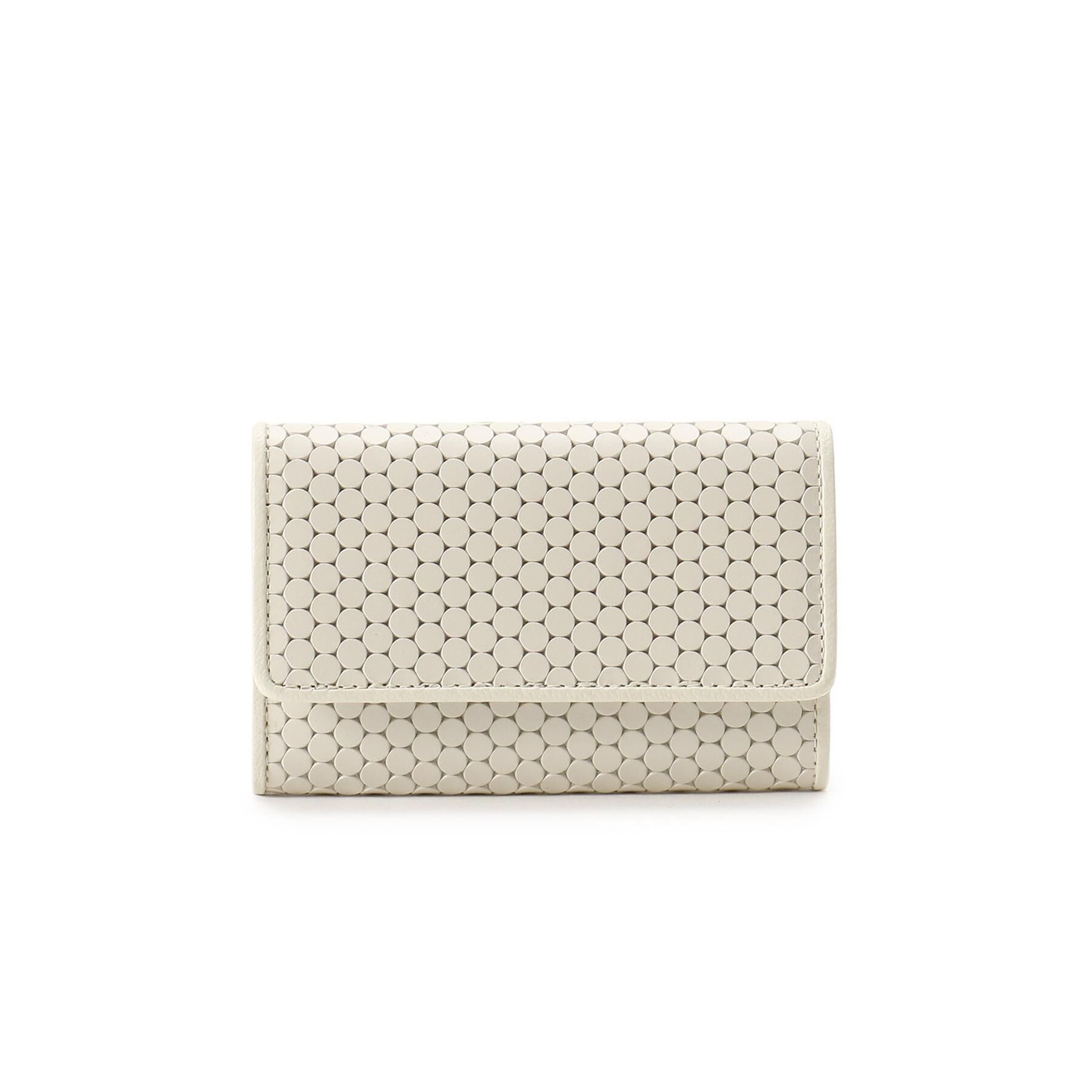 【商品説明】シンプルなデザインながら、型押しレザーと淡い色合いが華やかに引き立ちます。中は2部屋に分かれ、フラップ裏にもカードを入れることができます.. |