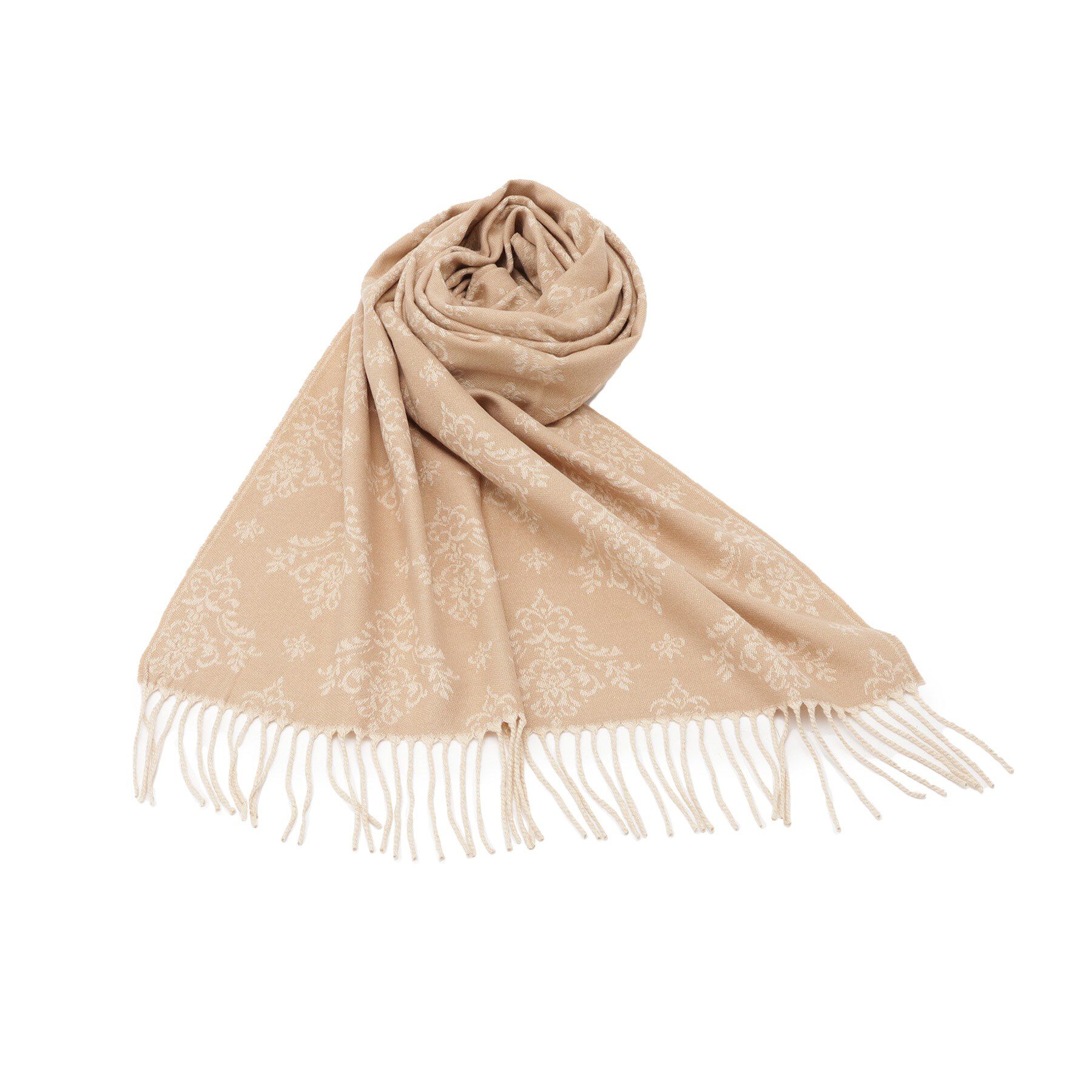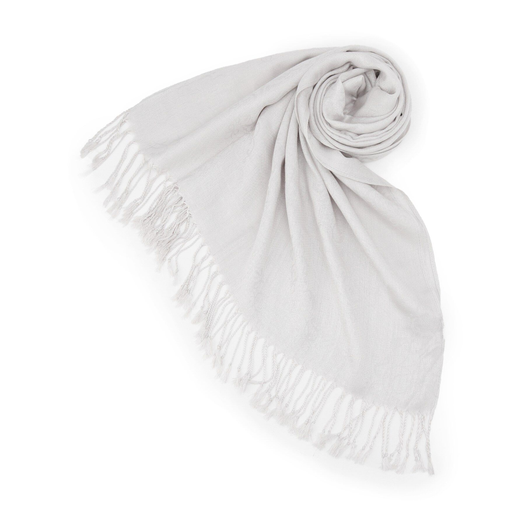 【デザイン】さっと羽織るだけで上品に決まるダマスク柄ストール。薄手のダマスクジャガード織りで、近くで見ると浮き立つ上品な柄がさりげないアクセントに。.. |