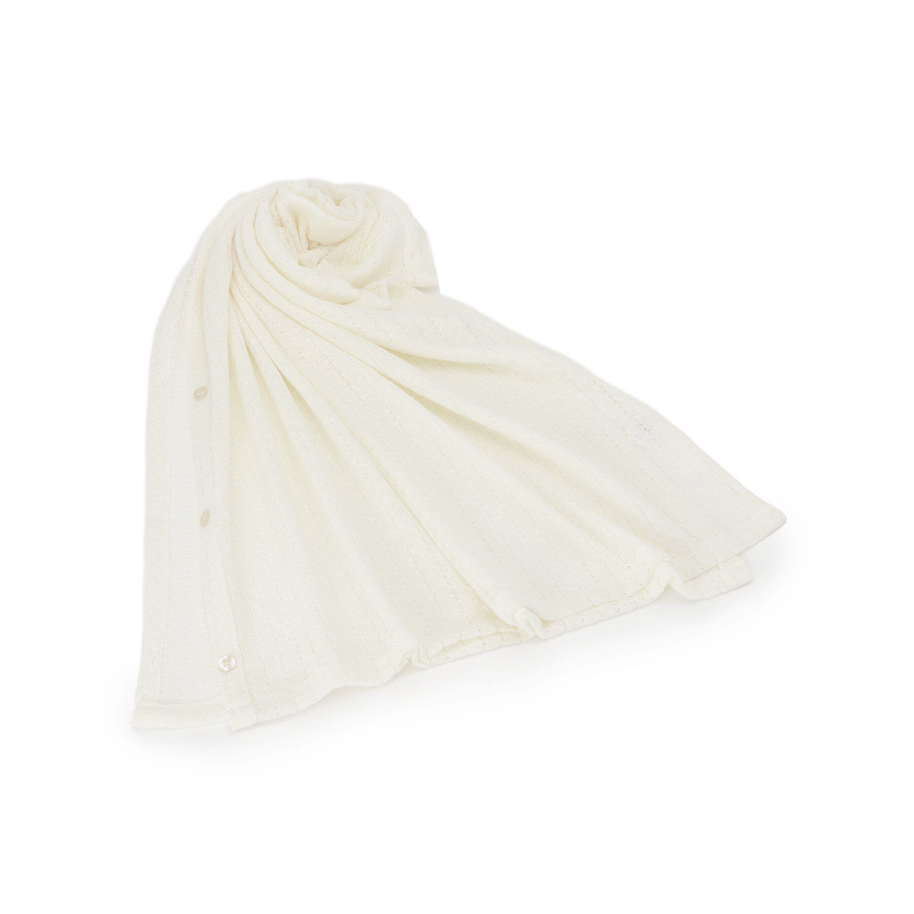 【デザイン】繊細な透かし編みの表情が程よい抜け感を生むニットストール。アイボリー・ブラック・ブラウンのベーシックカラーで合わせやすく、カジュアルから.. |