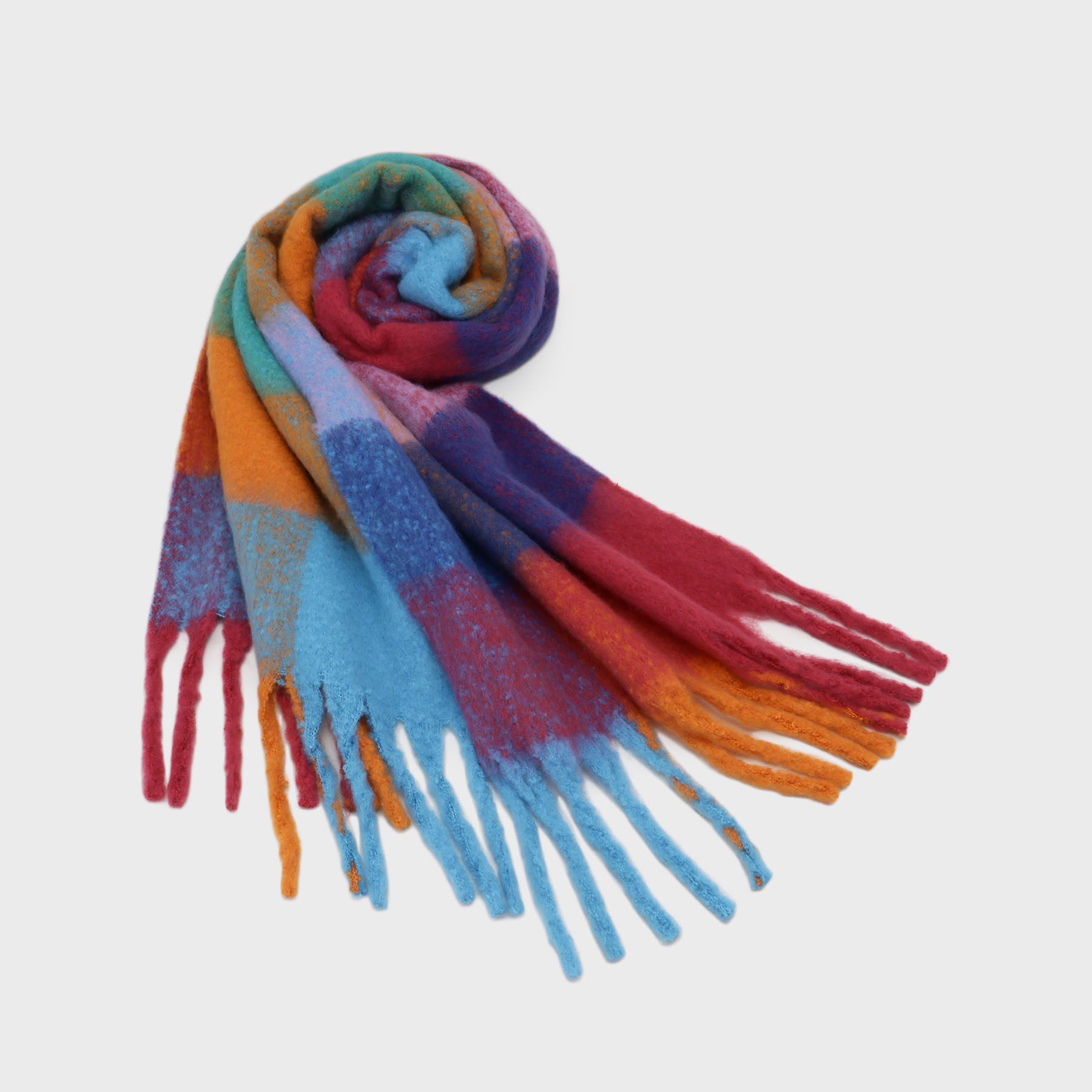ふわふわの肌触りが魅力!幅広いスタイリングに合わせやすい無地の大判フリンジマフラー・やわらかい風合いと肌触りが特徴・無地のカラー展開はスタイリングに.. |