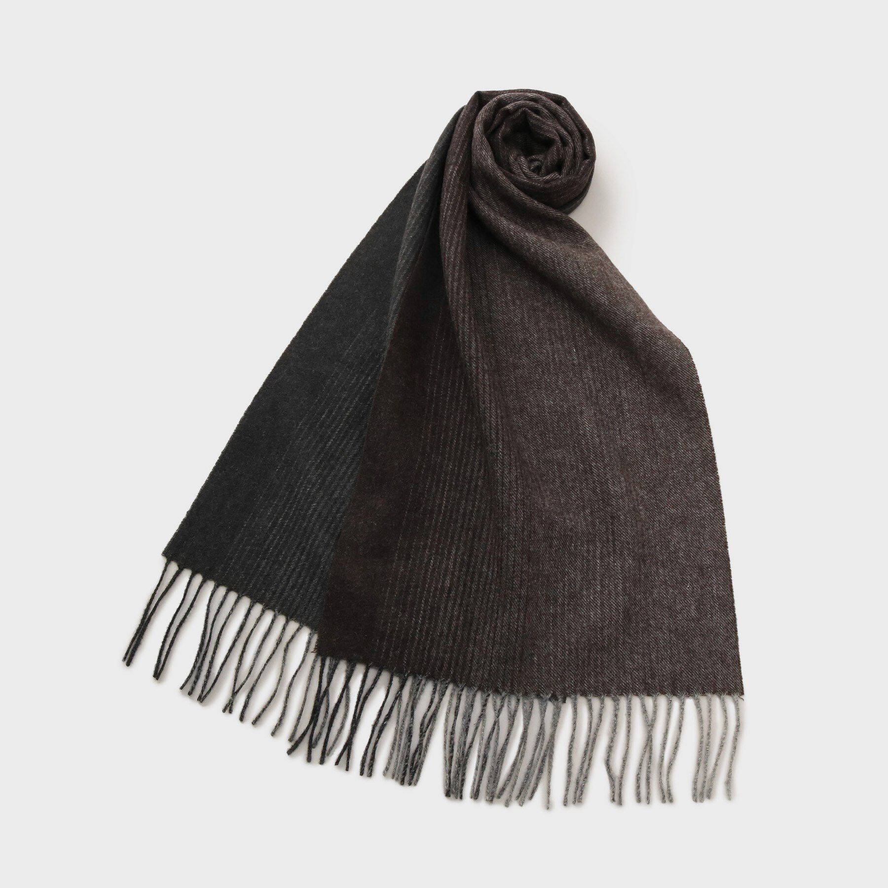 大人っぽい雰囲気の無地使いできるバイカラーデザインのカシミャ100%マフラー【デザインポイント】ほどよい厚みで温かいだけでなく、巻きやすいバイカラーデザ.. |
