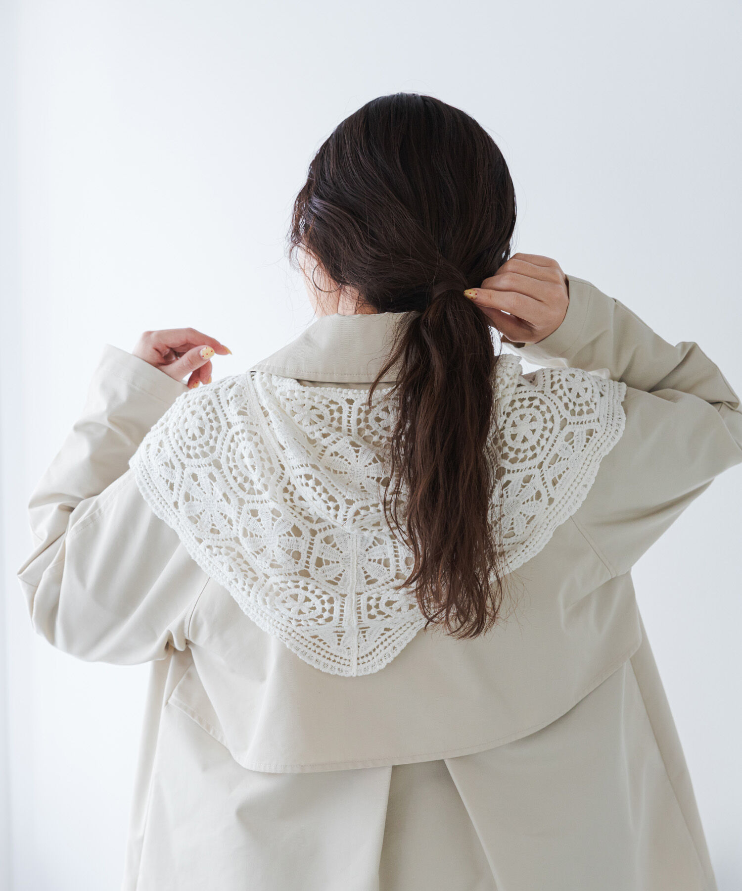 柔らかいコットン素材の繊細なレースを使用した、トレンドの三角スカーフ。大人でも使いやすいように甘さを抑えたレース模様にこだわって仕上げました。肩に掛.. |